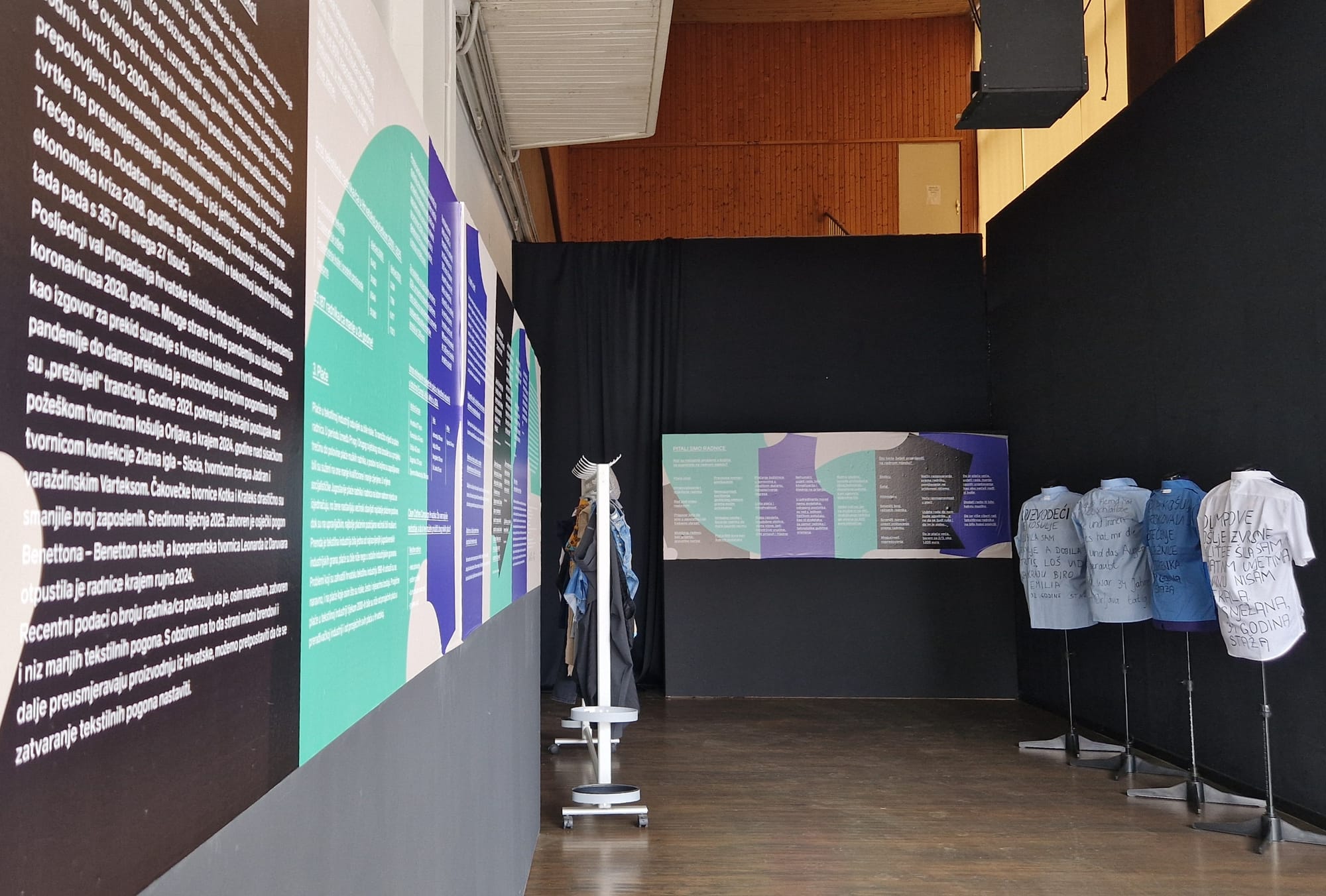 Iza izložbe stoji nizozemska organizacija Clean Clothes Campaign, a govori o uvjetima rada u globalnoj tekstilnoj industriji. Segment izložbe nazvan je “Hrvatska tekstilna industrija: hod po rubu”. Tekst potpisuju Ana Vragolović iz Novog sindikata i Kosjenka Laszlo Klemar iz Tehničkog muzeja, a postav je oblikovala Barbara Blasin.